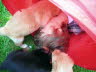 07.06.07 Vier Wochen sind die Babys heute alt. Nach dem Frühstück geht es bei dem herrlichen Wetter hinaus in den Garten - immer noch unter Mamas Kontrolle.